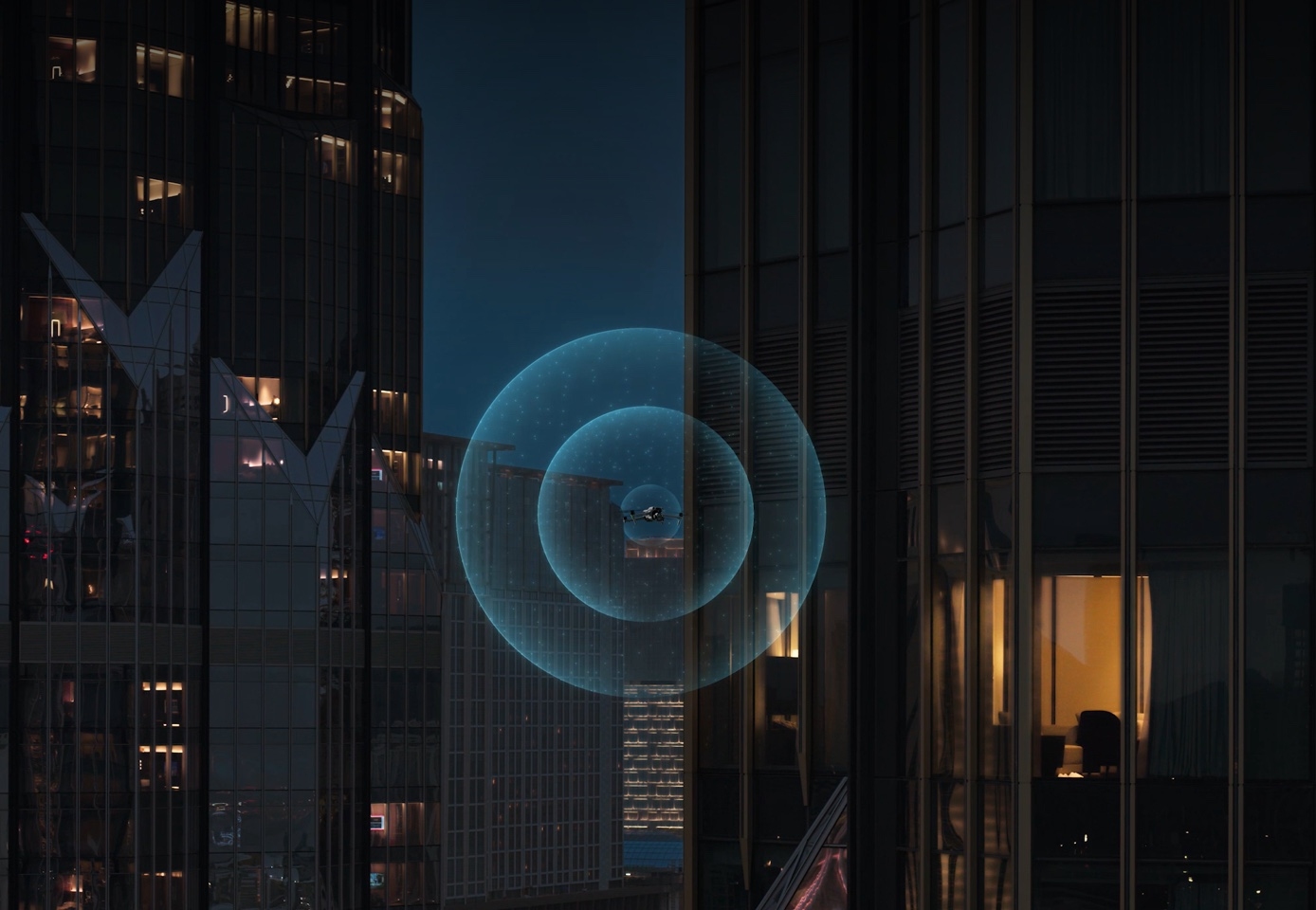 Forward-facing LiDAR, downward infrared ToF sensor, and three pairs of vision sensors allow nightscape [4] to detect and avoid obstacles.