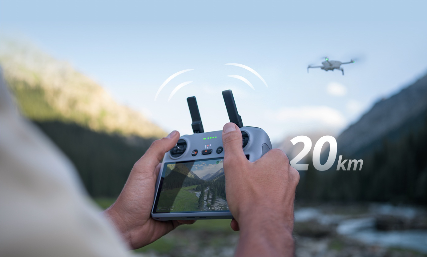 The drone features DJI’s O4 video transmission. Enjoy smooth 1080p/60fps live feeds from up to 20 km.